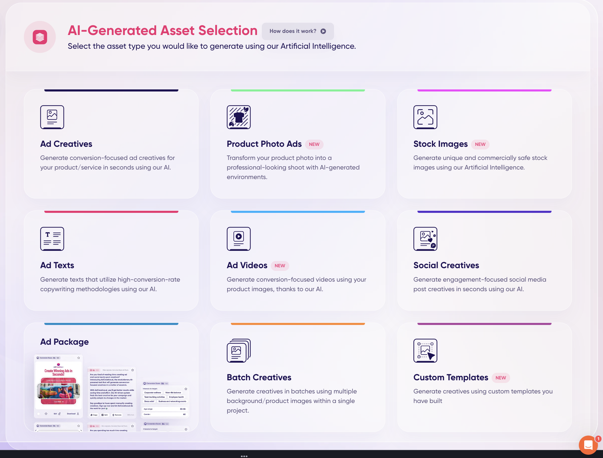 Dadurch entfällt der stundenlange Aufwand, der normalerweise für die manuelle Erstellung von Werbegrafiken, Videos und Werbetexten benötigt wird.