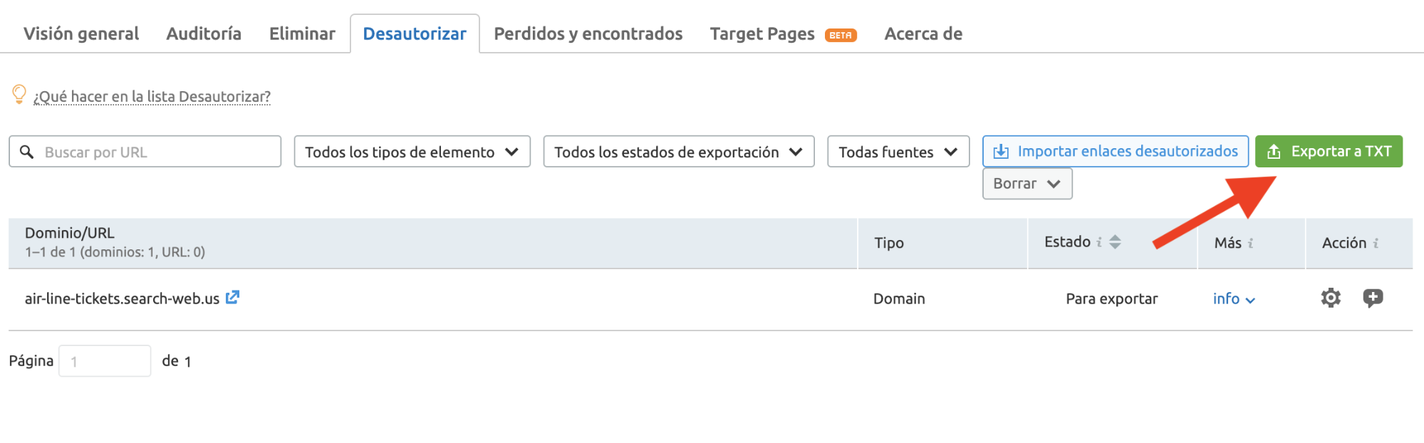 Analizar backlinks y enlaces SEO - Exportación para desautorizar