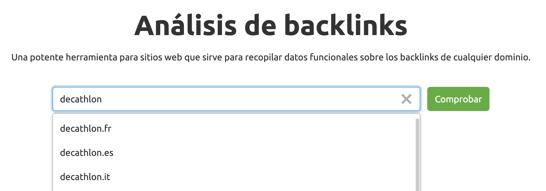 Para empezar con la herramienta, necesitas introducir un dominio.