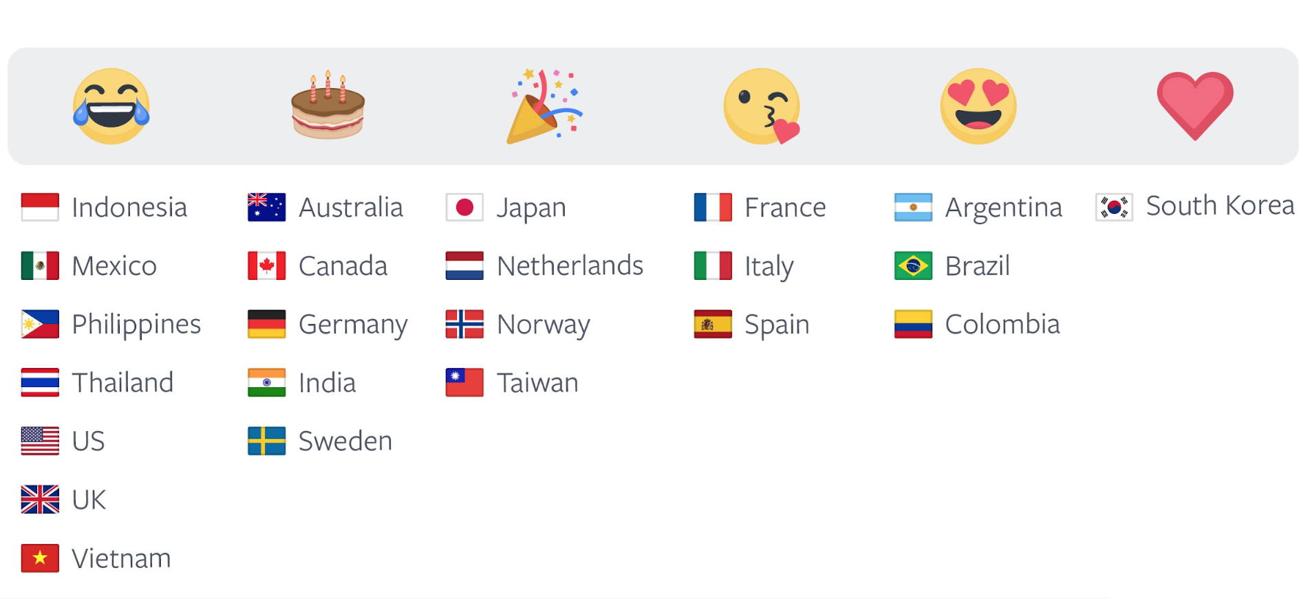 Si hablamos específicamente de emojis en formato regional, éstos son los más utilizados en los distintos países.