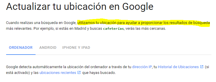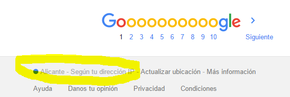 Ya no se puede especificar la ubicación y Google geolocaliza todas las búsquedas por lo que nos quedan pocas opciones para saber cuál es nuestra posición real: