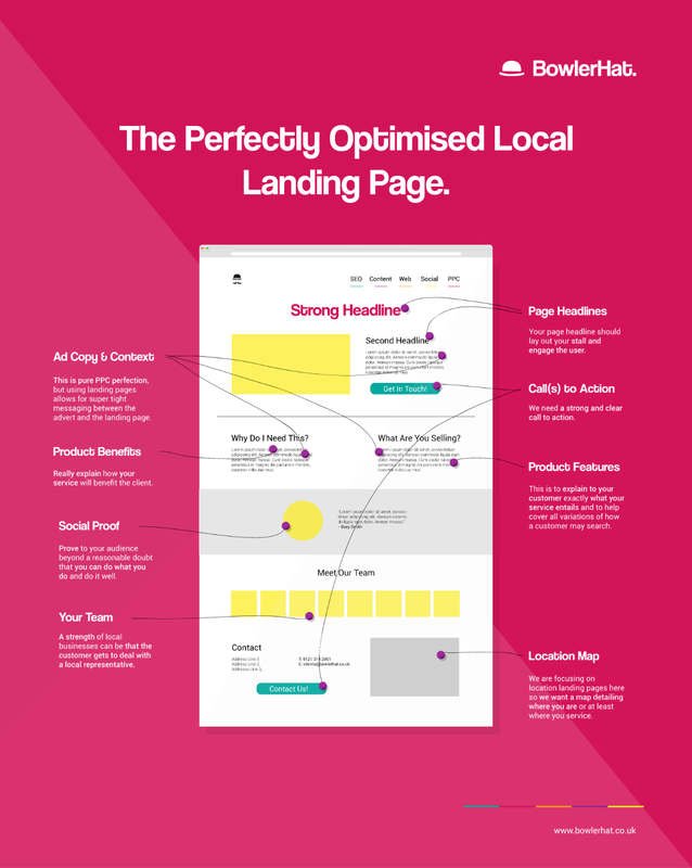 Aquí te comparto una buena infografía sobre cómo deberías diseñar tu página ideal para rankear por SEO local: