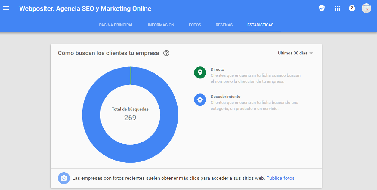 Para muestra un botón, mirad lo que ocurrió después de conseguir 20 reseñas (repartidas a lo largo de 3 días) para la ficha de mi agencia Webpositer.