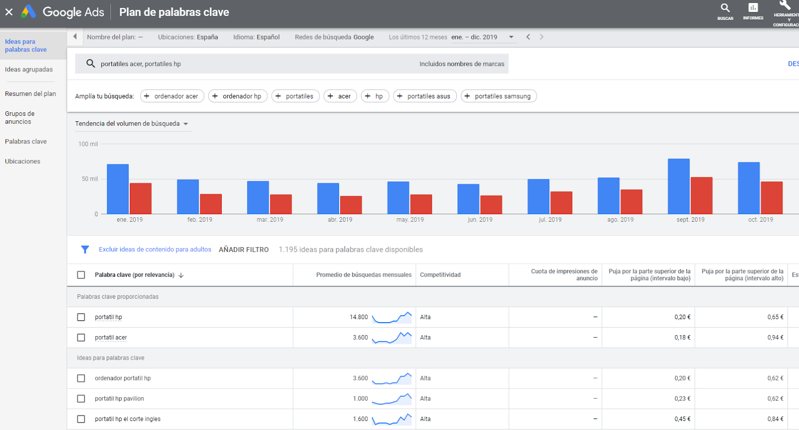 Esta herramienta requiere tener una cuenta de Google Ads y nos permite descubrir nuevas palabras clave y consultar el volumen de búsquedas.