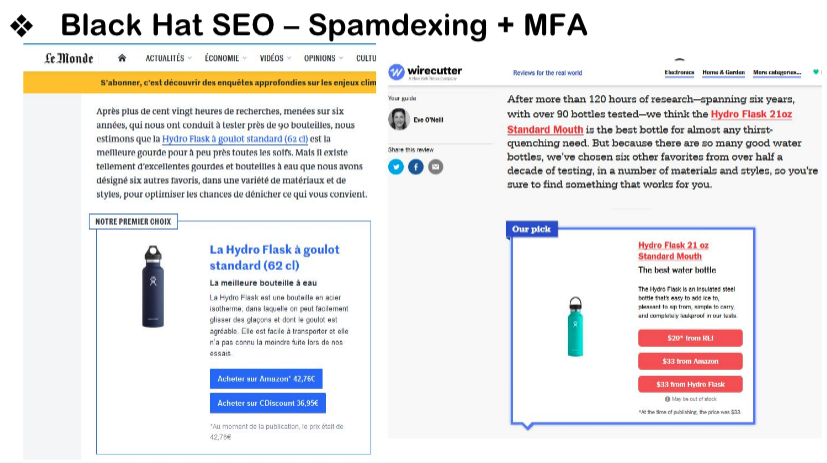 C’est la même chose pour la génération artificielle de liens, une technique très répandue, alors qu’elle est prohibée par Google.
