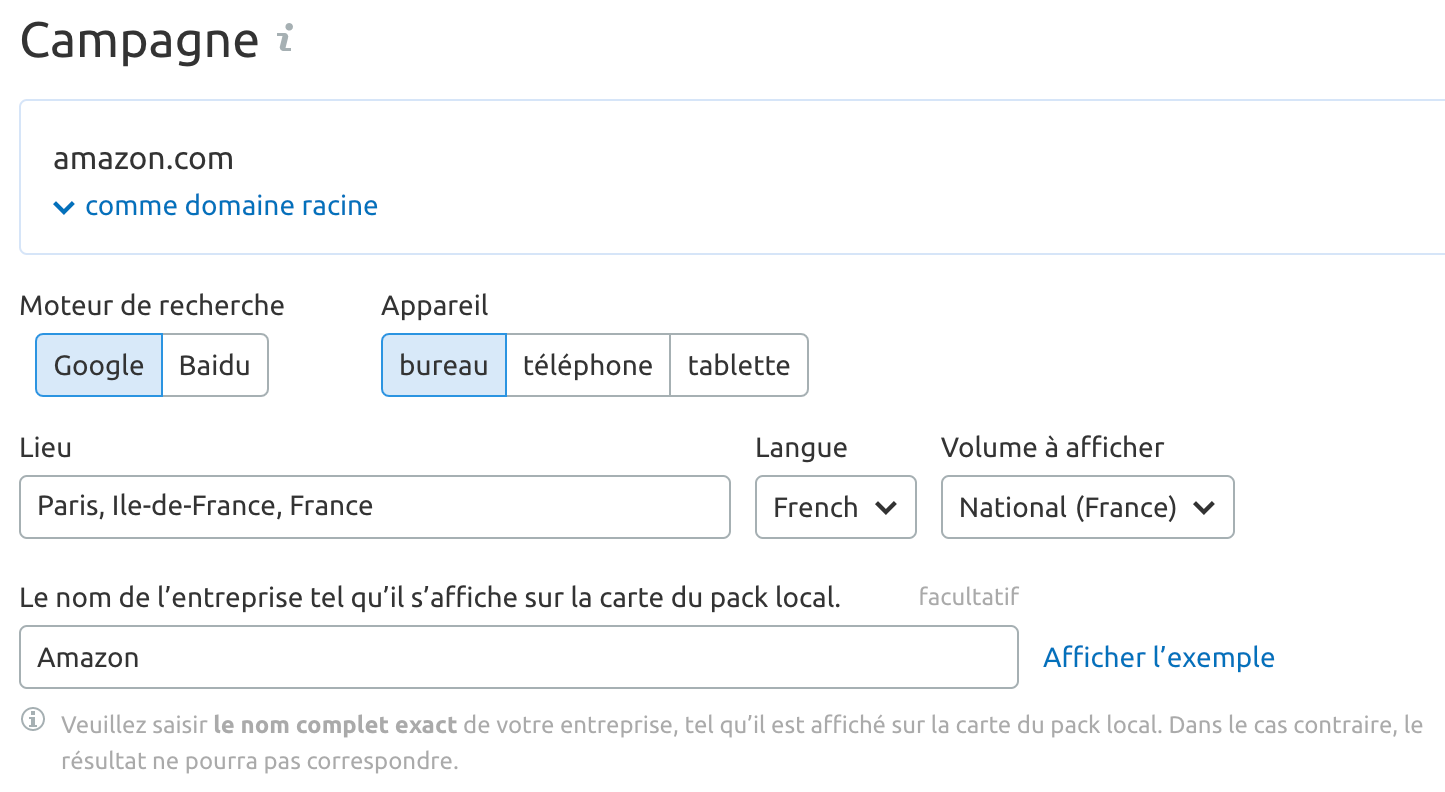 Cette fonction vous permet de suivre vos résultats SEO localau niveau d'un code postal pour un suivi encore plus spécifique.