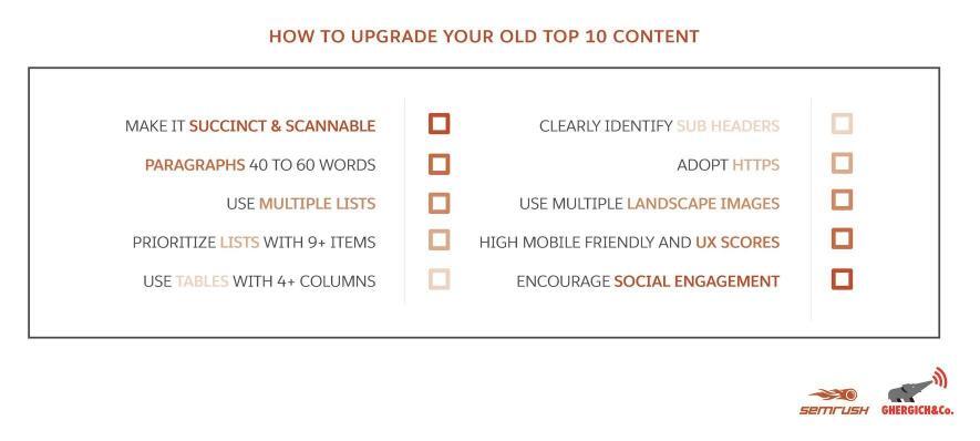 Un'ottima tattica in questo caso è realizzare una content audit per scoprire le pagine che ostacolano il resto del tuo sito. Nella nostra checklist SEO ti consigliamo vivamente di controllare i tuoi contenuti, affermando che: