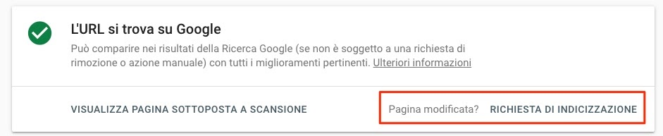 Come prima cosa apri il profilo del tuo sito su Google Serach Console e inserisci nella barra di ricerca l’url che vuoi reinviare a Google: