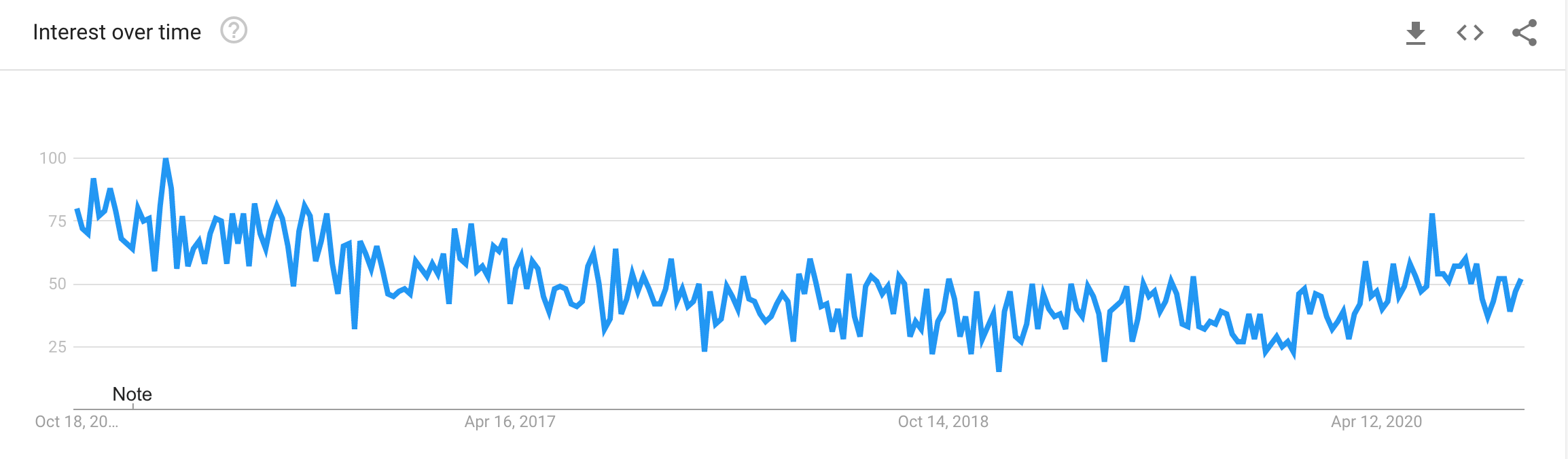 E embora possa haver aumento ou diminuição no interesse com o tempo a longo prazo, ele não é afetado pela temporada. Ao longo do ano, as pessoas sempre buscam por esses assuntos.
