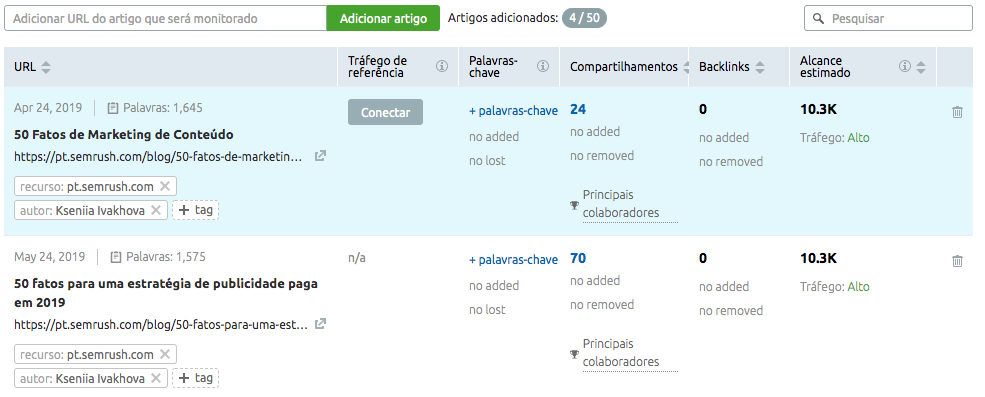 A ferramenta Post Tracking permite monitorar o desempenho de seu conteúdo em fontes externas. O guest posting é uma ótima maneira de fazer linkbuilding e promover sua marca, mas medir o sucesso de seus esforços pode ser difícil sem a ferramenta certa.